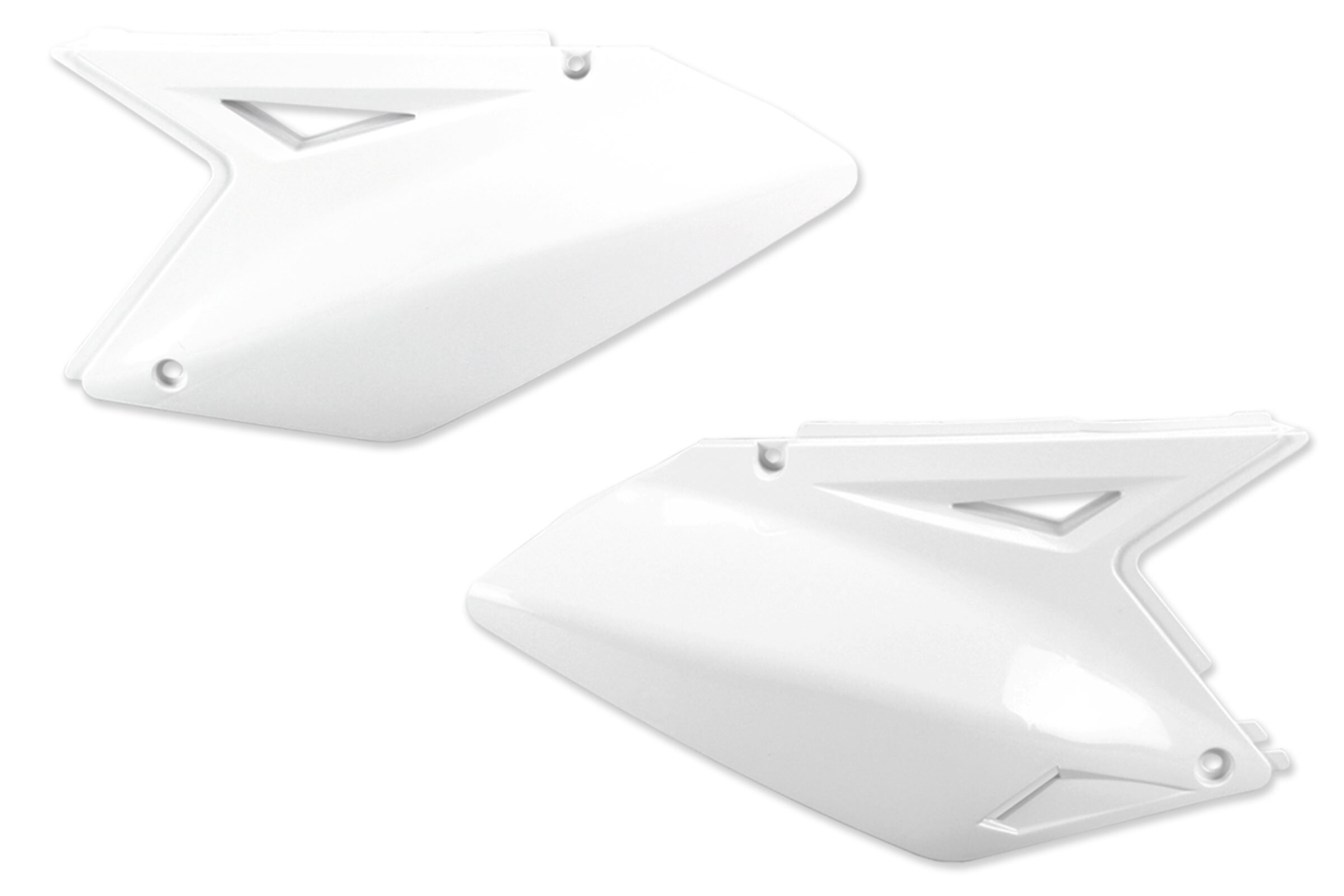 When your original dirt bike plastics need to be replaced, the UFO White Side Number Plates replacement plastics are an affordable, more durable option and are built to exceed original specifications.