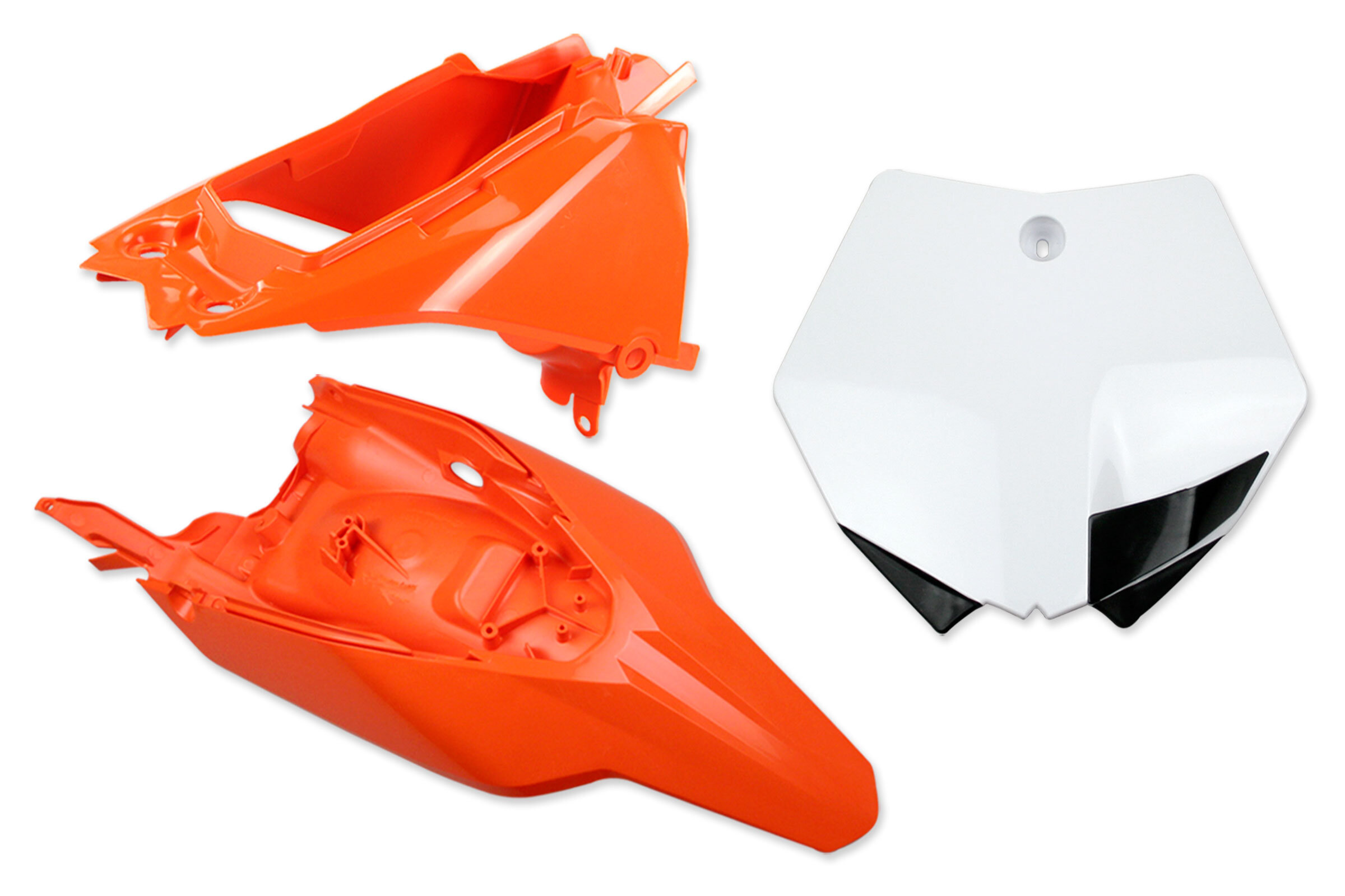 Upgrade your bike's appearance and performance with number plate replacement plastic combo kit. Ride confidently, knowing you've got a reliable and stylish aftermarket plastics for your KTM that can withstand the toughest off-road adventures on or off the race track!