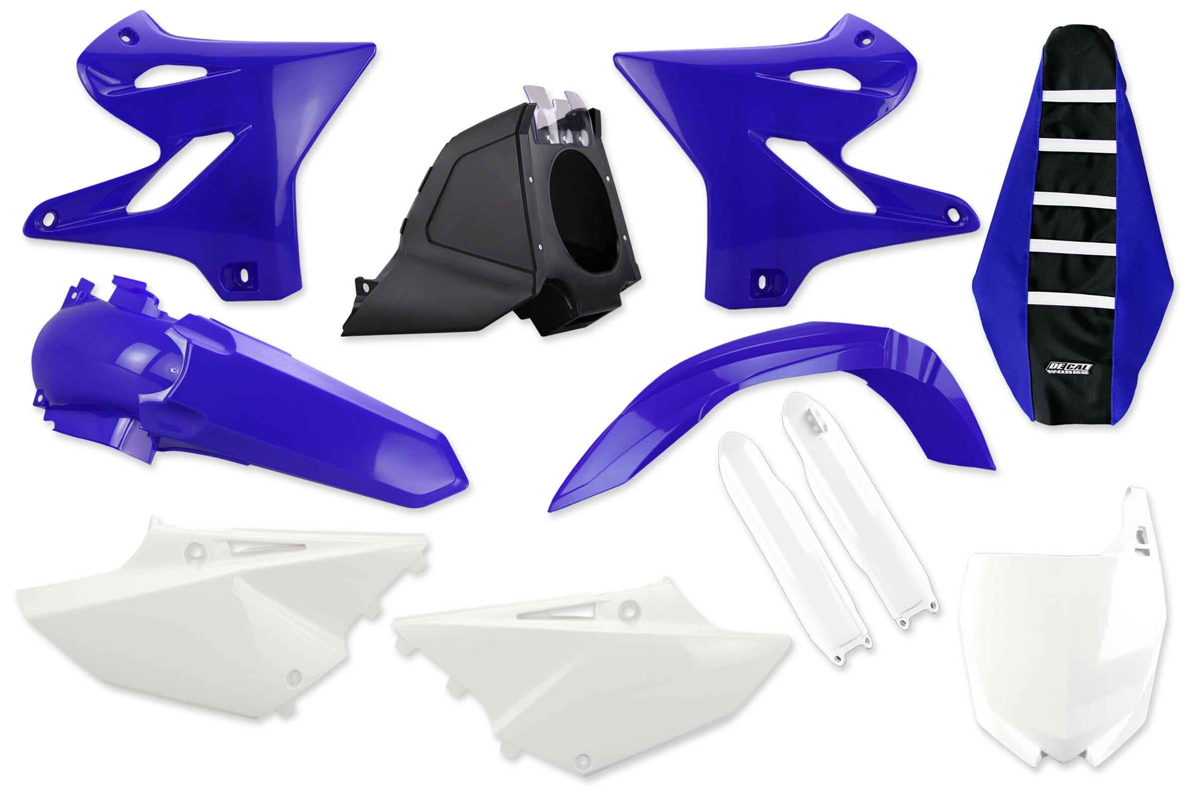 This kit comes complete with everything you need to make your bike look like new. The DeCal Works Mix & Match Color Complete Plastic Kit with Lower Fork Guards and Gripper Seat Cover for your Yamaha dirt bike allows you to choose each part's color individually to suit your personal style. DeCal Works stocks the largest selection of plastic from top known manufactures including Polisport and UFO. Rest assured, whether you choose Polisport or UFO both manufactures are known for their high resistance, durability, and perfect fit.