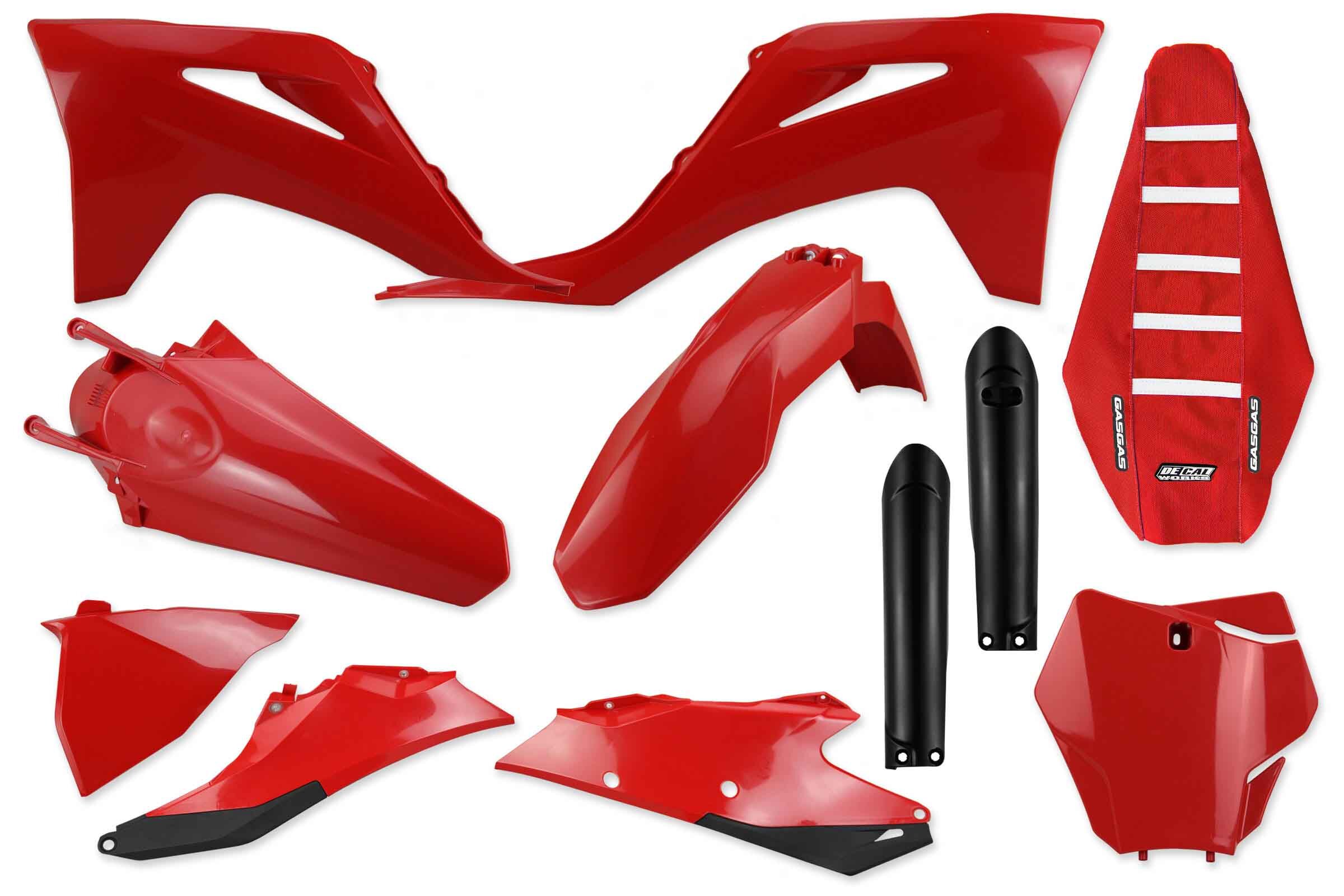 This kit comes complete with everything you need to make your bike look like new. The DeCal Works Mix & Match Color Complete Plastic Kit with Lower Fork Guards and Gripper Seat Cover for your GasGas dirt bike allows you to choose each part's color individually to suit your personal style. DeCal Works stocks the largest selection of plastic from top known manufactures including Polisport and UFO. Rest assured, whether you choose Polisport or UFO both manufactures are known for their high resistance, durability, and perfect fit.