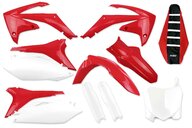 This kit comes complete with everything you need to make your bike look like new. The DeCal Works Mix & Match Color Complete Plastic Kit with Lower Fork Guards and Gripper Seat Cover for your Honda dirt bike allows you to choose each part's color individually to suit your personal style. DeCal Works stocks the largest selection of plastic from top known manufactures including Polisport and UFO. Rest assured, whether you choose Polisport or UFO both manufactures are known for their high resistance, durability, and perfect fit.