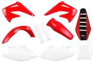 This kit comes complete with everything you need to make your bike look like new. The DeCal Works Mix & Match Color Complete Plastic Kit with Lower Fork Guards and Gripper Seat Cover for your Honda dirt bike allows you to choose each part's color individually to suit your personal style. DeCal Works stocks the largest selection of plastic from top known manufactures including Polisport and UFO. Rest assured, whether you choose Polisport or UFO both manufactures are known for their high resistance, durability, and perfect fit.