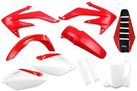 This kit comes complete with everything you need to make your bike look like new. The DeCal Works Mix & Match Color Complete Plastic Kit with Lower Fork Guards and Gripper Seat Cover for your Honda dirt bike allows you to choose each part's color individually to suit your personal style. DeCal Works stocks the largest selection of plastic from top known manufactures including Polisport and UFO. Rest assured, whether you choose Polisport or UFO both manufactures are known for their high resistance, durability, and perfect fit.