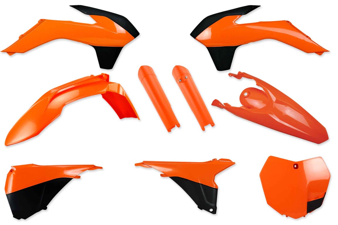 The DeCal Works Mix & Match Color Complete Plastic Kit with Lower Fork Guards for your KTM dirt bike allows you to choose each part's color individually to suit your personal style. DeCal Works stocks the largest selection of plastic from top known manufactures including Polisport and UFO. Rest assured, whether you choose Polisport or UFO both manufactures are known for their high resistance, durability, and perfect fit.