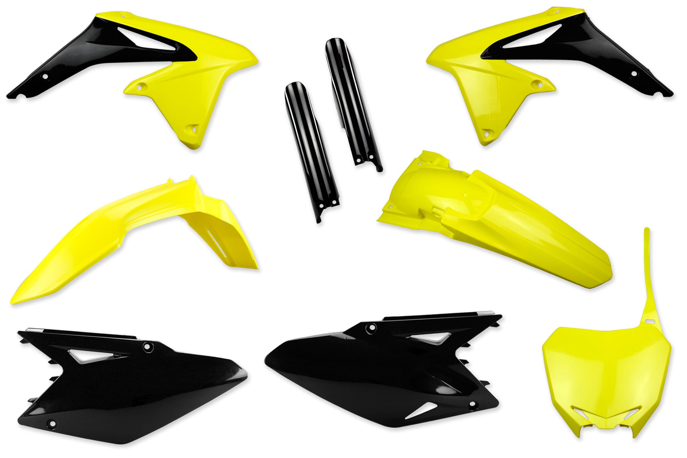 The DeCal Works Mix & Match Color Complete Plastic Kit with Lower Fork Guards for your Suzuki dirt bike allows you to choose each part's color individually to suit your personal style. DeCal Works stocks the largest selection of plastic from top known manufactures including Polisport and UFO. Rest assured, whether you choose Polisport or UFO both manufactures are known for their high resistance, durability, and perfect fit.