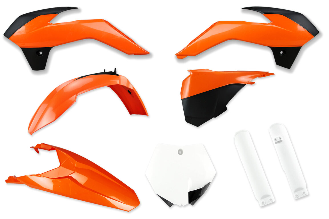 The DeCal Works Mix & Match Color Complete Plastic Kit with Lower Fork Guards for your KTM dirt bike allows you to choose each part's color individually to suit your personal style. DeCal Works stocks the largest selection of plastic from top known manufactures including Polisport and UFO. Rest assured, whether you choose Polisport or UFO both manufactures are known for their high resistance, durability, and perfect fit.