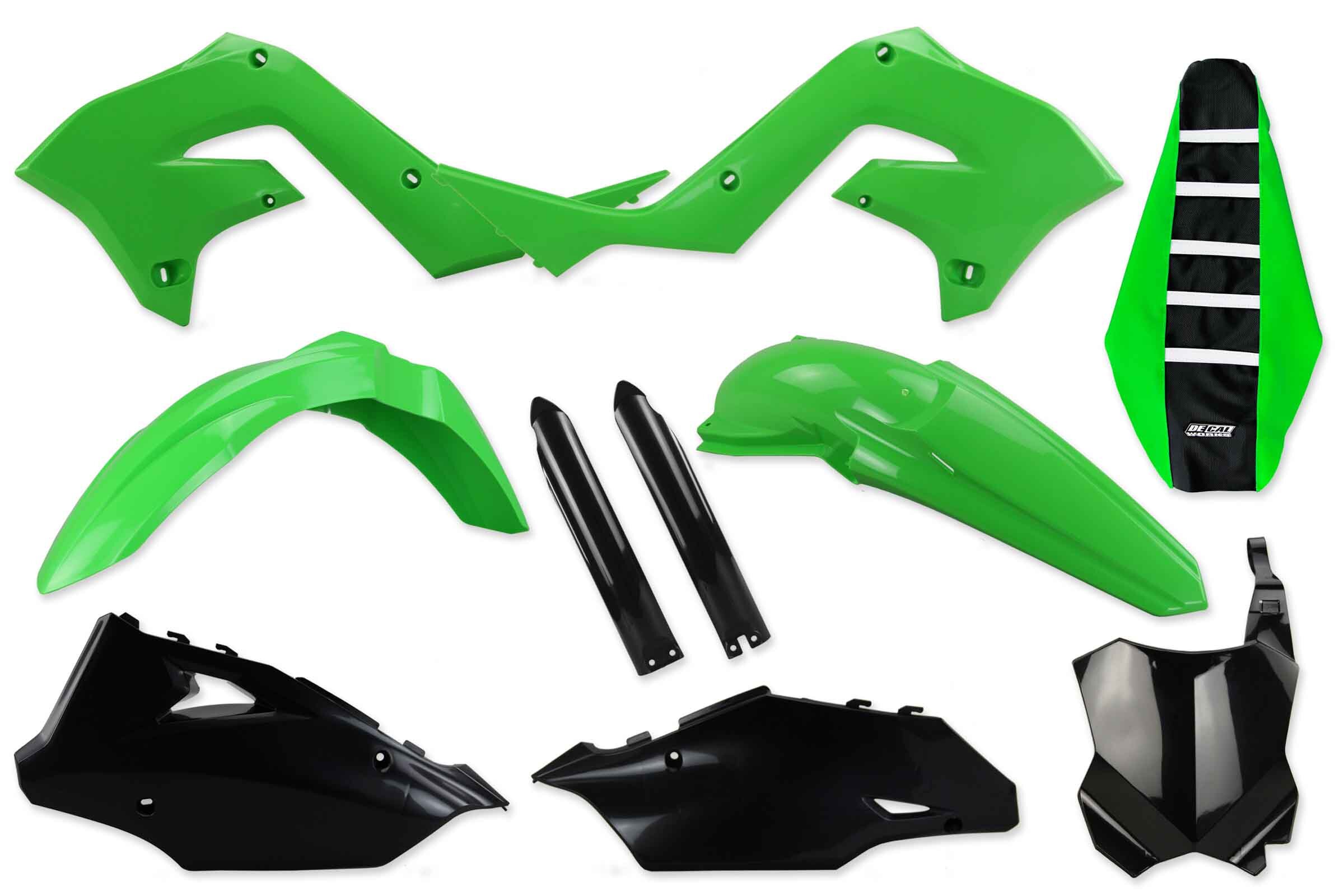 Looking for a modern design? Give your dirt bike the life it deserves with the Polisport Restyling Kit. It's time to go even further in time and give these icons the opportunity to look as good as new. Easy to replace and install, as this is a direct bolt-on plastic kit, without the need for special hardware or changes to the bike seat or tank. Revive your ride, with Polisport Restyling Plastic Kits. The DeCal Works Mix & Match Color Restyled Complete Plastic Kit With Lower Forks & Seat Cover for your Kawasaki dirt bike allows you to choose each part's color individually to suit your personal style. DeCal Works stocks the largest selection of plastic.
