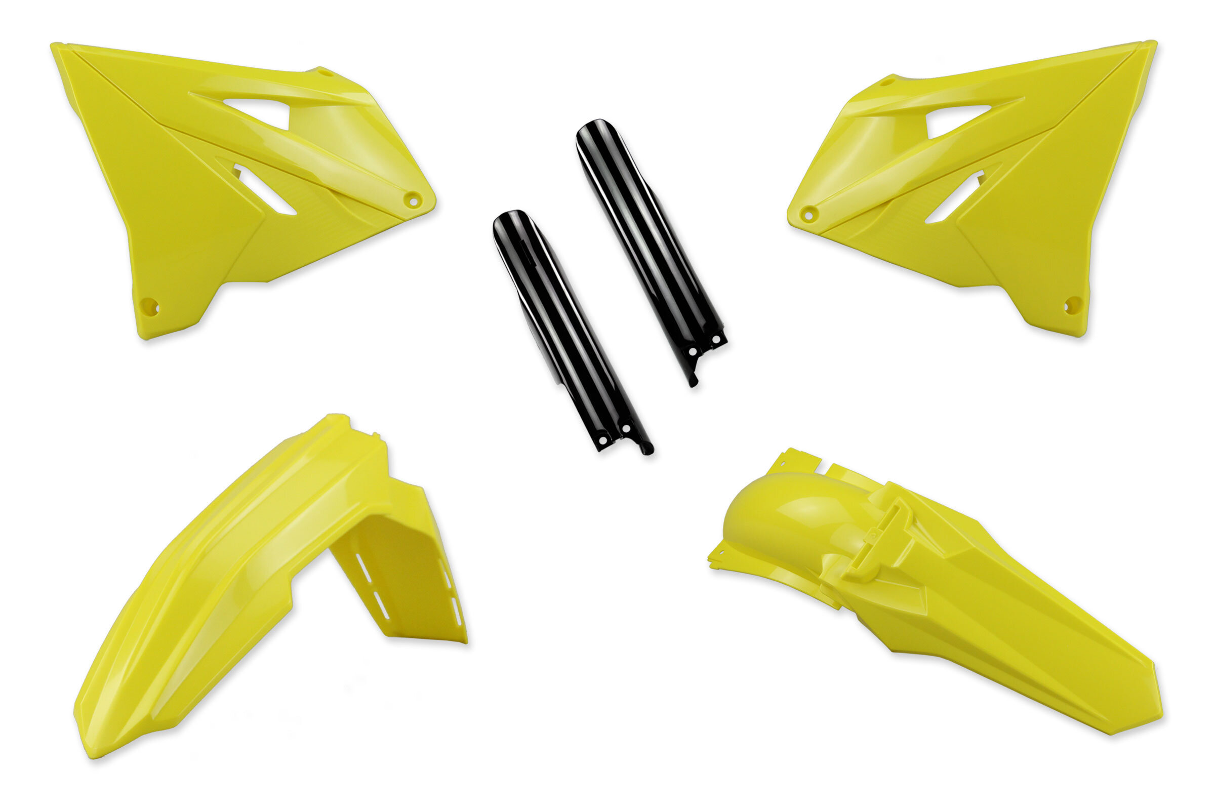 The yellow fever is here with Polisport's new restyling kit. Now the owners of the RM 125/250 2 strokes from 2001 onward will be able to renew, restyle and revive their motorcycles. Polisport restyling kit, inspired in the RMZ 2019 looks, will give this iconic two-stroke a complete facelift, making it look like new. As usual, the Polisport restyling kit will bolt directly on the bike, without any need to change anything. Mix & Match Color Restyled Full Plastic Kit for your Suzuki dirt bike allows you to choose each part's color individually to suit your personal style. DeCal Works stocks the largest selection of plastic colors.